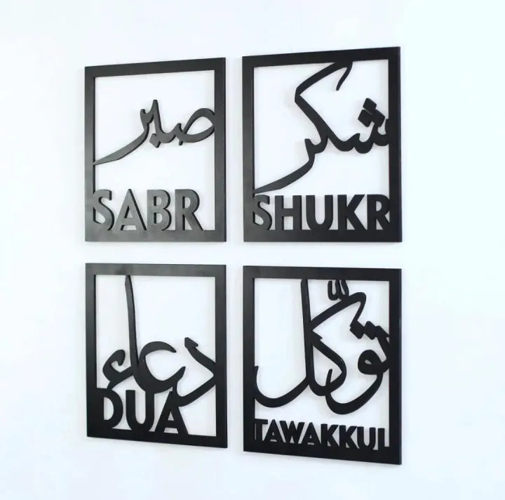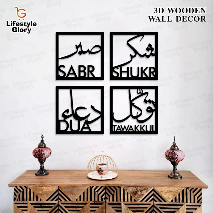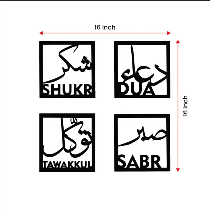 Four Elements of Life Sabar, Shukar, Dua, Tawakkul Brand: Lifestyle Glory Color: Black Ready Size: 16x16 inches Material: MDF Wood Thickness: 3mm Pattern: 3D Laser Cut Easy to Install with Double Tape. Perfect Home Decoration Item Wooden Wall Art Islamic Wall Art Wall Decoration Items Important Note: Please check description for Size/ Color/ Material/ Quantity before placing order. 1. Before pasting, clean the surface to get the maximum grip. 2. Make sure to paste this product over smooth & dry surface. 3. Real Color of the Item May Be Slightly Different from the Pictures Shown on Website Caused by Many Factors Such as Brightness of Your Monitor and also wood texture Lifestyle Glory Brand Four Elements of Life, Sabar Shukar Dua Tawakkul, Islamic Wall Art, Wooden Wall Decoration Items for Home, Decorating Items For Room, Decorating Items , Decoration Pieces, Room Decorating items